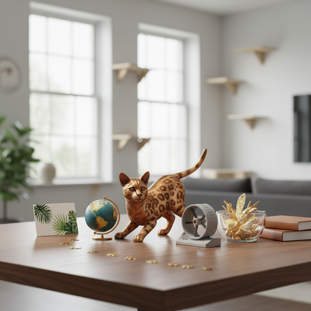 Prieš parsivežant Bengalijos katę į namus, būtina tinkamai paruošti gyvenamąją aplinką. Šios katės iš prigimties mėgsta būti aukštai, nes tai leidžia joms stebėti savo teritoriją ir jaustis saugiai. Vertikalios erdvės sukūrimas yra ne rekomendacija, o būtinybė. Invesuokite į aukštus, tvirtus ir stabilius draskyklių medžius. Idealiu atveju, namuose turėtų būti įrengtos specialios lentynėlės ant sienų, kuriomis katė galėtų laipioti ir šokinėti iš vieno kambario galo į kitą.