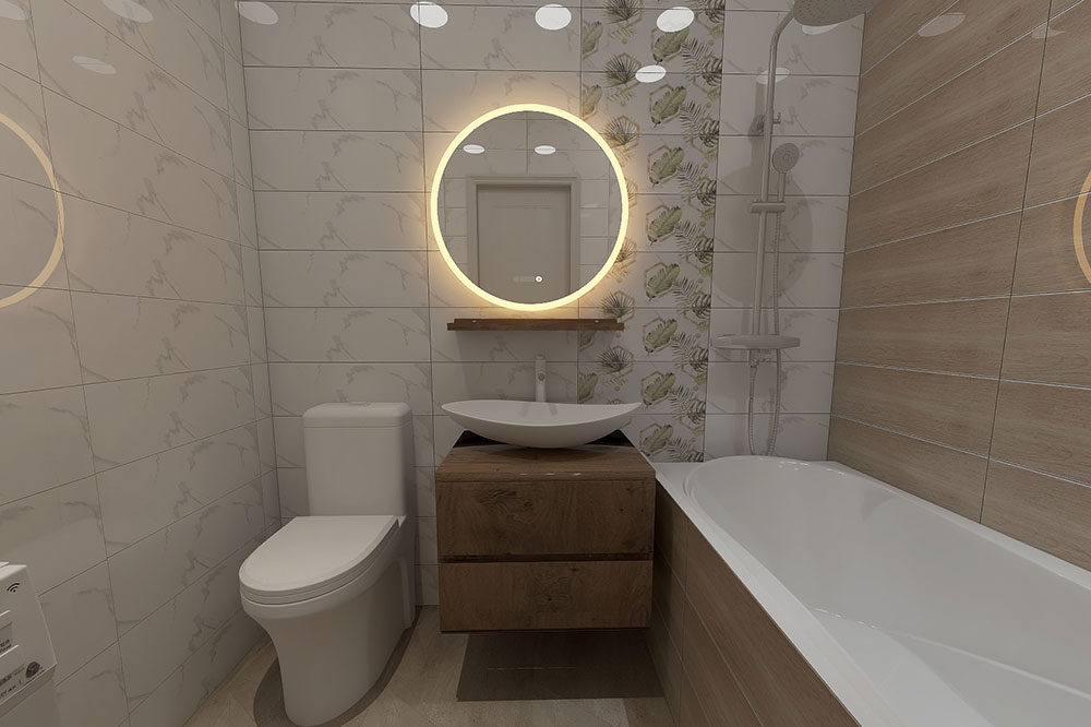 Kuo daugiau apšvietimo scenarijų, tuo geriau. Vonios kambarys – ne išimtis. Be pagrindinio apšvietimo, pravartu atlikti lengvą apšvietimą, o pagrindinius priedus galite papildomai apšviesti akcentais.