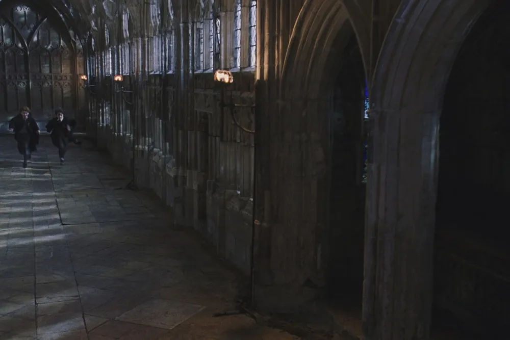 Filme “Haris Poteris ir filosofinis akmuo” buvo panaudotos katedros galerijos. Šiauriniu koridoriumi, netoli tualeto, kur vienuoliai plaudavo rankas, Haris ir Ronas nubėgo į pagalbą Hermionai Granger. Pietinė ir vakarinė galerijos buvo koridorius, vedantis į Grifindoro fakulteto kabinetus.