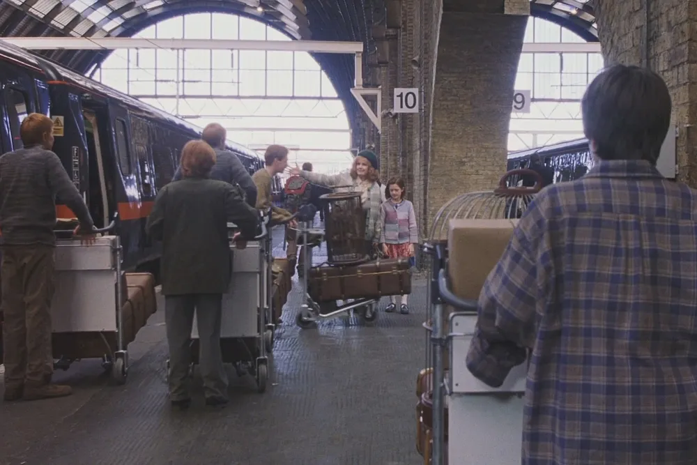 Iš tikrųjų tarp 9 ir 10 peronų yra geležinkelio bėgiai. Taigi scena iš filmo “Haris Poteris ir filosofinis akmuo”, kurioje Haris bando surasti įėjimą ir susitinka su Veslių šeima, buvo filmuojama tarp 4 ir 5 platformų.