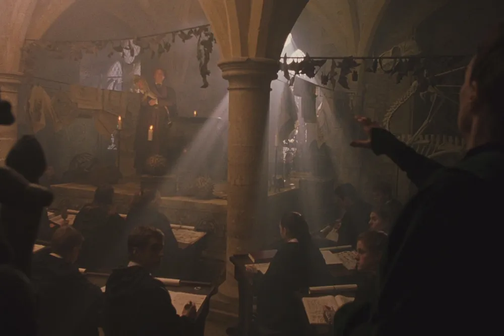 Filme “Haris Poteris ir Ugnies taurė” pasirodo vienuolynas – galerijų apsuptas kiemas. Ten Haris susiduria su Draku Malfoy, o profesorius Alastoras Grumas už bausmę jį paverčia šešku.