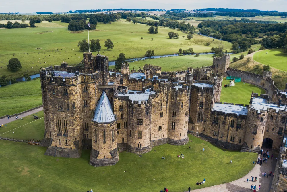 Kai kurios scenos iš pirmųjų dviejų sagos filmų – “Haris Poteris ir filosofinis akmuo” bei “Haris Poteris ir paslapčių kambarys” – buvo filmuojamos Alnvike. Pavyzdžiui, išoriniame pilies kieme Hogvartso burtų ir kerų mokyklos pirmakursiai mokėsi skraidyti ant šluotų.