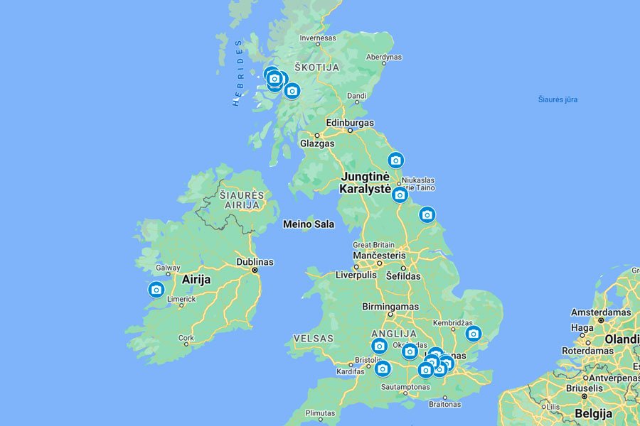 Papasakosiu, kur buvo filmuojamos scenos Hogvartso burtų ir kerų mokykloje ir kitose vietose. Visas straipsnyje nurodytas vietas pažymėjau žemėlapyje: