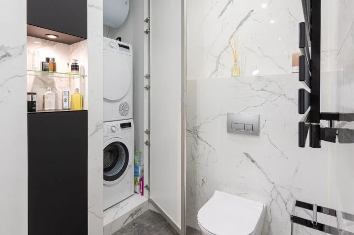 Taip pat tai puiki galimybė sutaupyti erdvę tiems, kurie neturi pakankamai vietos namuose, kad galėtų turėti ir skalbimo mašiną, ir džiovyklę atskirai.