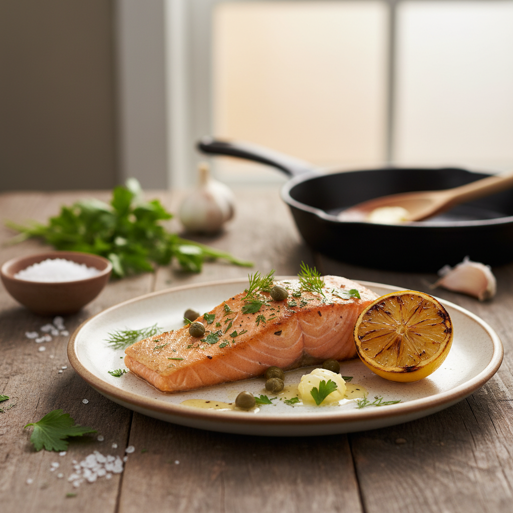 Lašiša yra viena populiariausių ir maistingiausių žuvų, kurią be galo lengva paruošti namų sąlygomis. Šis receptas yra idealus greitai ir sočiai vakarienei. Kadangi lašišoje gausu natūralių gerųjų riebalų, ji išlieka itin sultinga, net jei esate pradedantysis virtuvėje.