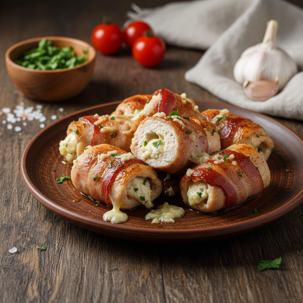 Ar dažnai susiduriate su dilema, ką pagaminti vakarienei, kai norisi kažko tikrai ypatingo, bet neturite jėgų ar noro ilgai suktis virtuvėje? Vištienos krūtinėlė yra vienas populiariausių pasirinkimų daugelio šeimų namuose, tačiau neretai pasitaiko, kad orkaitėje ar keptuvėje paruošta balta mėsa tampa sausa ir sprangia. Būtent todėl šis kulinarinis sprendimas – sultingi vištienos suktinukai, apvynioti plonais traškios šoninės griežinėliais – yra tikras išsigelbėjimas. Šis patiekalas nereikalauja jokių sudėtingų kulinarijos žinių, tačiau galutinis rezultatas lėkštėje atrodo taip, tarsi būtumėte praleidę valandų valandas ruošdami restorano lygio šedevrą. Šoninė atlieka ne tik estetinę ir skonio funkciją, bet ir veikia kaip apsauginis barjeras, neleidžiantis vištienos natūralioms sultims išgaruoti kepimo metu. Rezultatas – neįtikėtinai minkšta, burnoje tirpstanti mėsa su lengvu dūmo aromatu ir gardžiu įdaru viduje. Tai universalus pasirinkimas, tinkantis tiek jaukiam šeimos vakarui, tiek ir šventiniam stalui, kai norisi nustebinti svečius nenaudojant egzotiškų ar brangių produktų.
