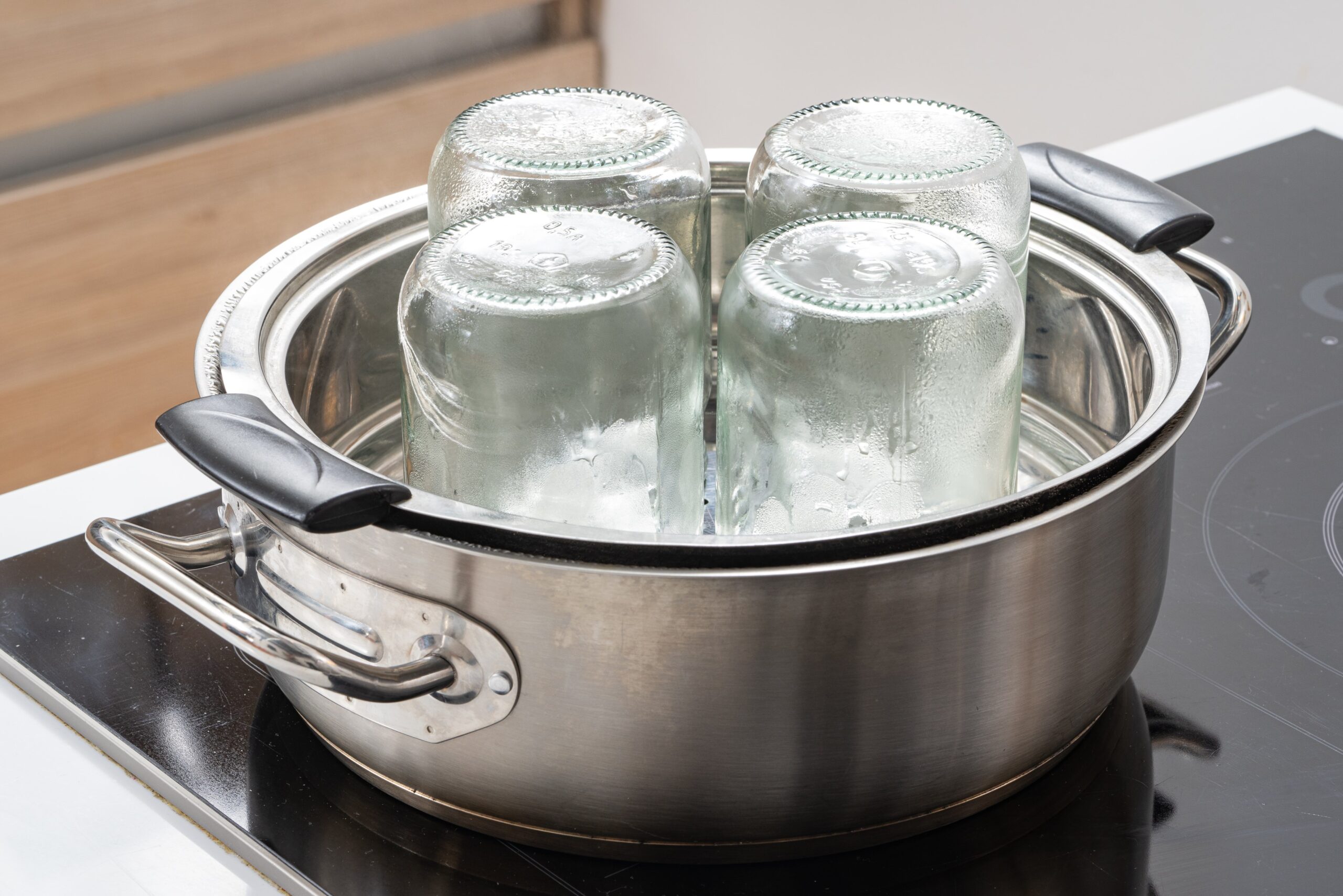 Sterilizuokite stiklainius ir dangtelius. Norint užtikrinti, kad jūsų pagamintos sultys būtų saugios ilgalaikiam laikymui, stiklainius ir jų dangtelius sterilizuokite virš garų 15-20 minučių. Po sterilizacijos įsitikinkite, kad stiklainiai yra visiškai sausi, kad sultys nesusigertų.