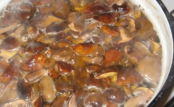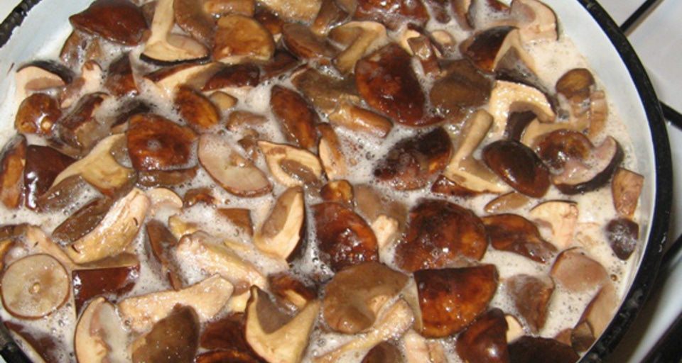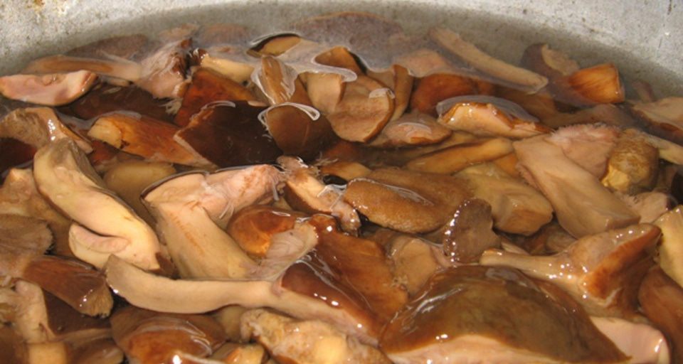 Gerai nuplaukite grybus, nuskuskite jų paviršių, supjaustykite gabalėliais ir išvirkite pasūdytame vandenyje. Virkite grybus 15 minučių. Proceso metu reguliariai nugriebkite putas, kad sultinys būtų švarus.