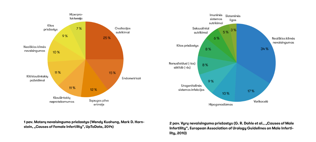 Medicinoje pastebima tendencija, kad moterys dėl nevaisingumo tiriamos dažniau. Tai nulemia du veiksniai: pirma, jos pačios greičiau pastebi kūno pokyčius, antra – daugelis ginekologinių ligų turi aiškius simptomus, kurie skatina apsilankyti pas gydytoją. Statistikoje moterų nevaisingumo priežastys yra aiškiai išskiriamos: nuo ovuliacijos sutrikimų iki kiaušintakių nepratekamumo.